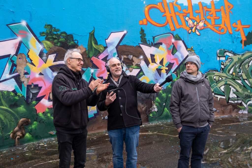Für unser „come back“ haben wir uns zwei besondere Künstler an einem besonderen Ort vor das Mikrofon geholt: Setus Studt, der geistige Vater von Planet Alsen, und Mirko Reisser aka DAIM der Graffiti-Artist aus Hamburg, mit dem wir übrigens in Folge HR026 (HR026 Hamburg Graffiti – eine bunte Zeitreise) schon einmal gepodcastet haben.