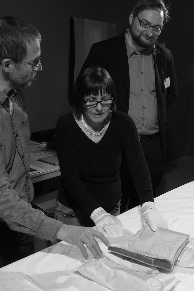 Mirko Gutjahr (ganz rechts) und KollegInnen bei der Arbeit – Mirko ist Kurator der Ausstellung „Luther! 95 Schätze – 95 Menschen“. Foto Thomas Bruns