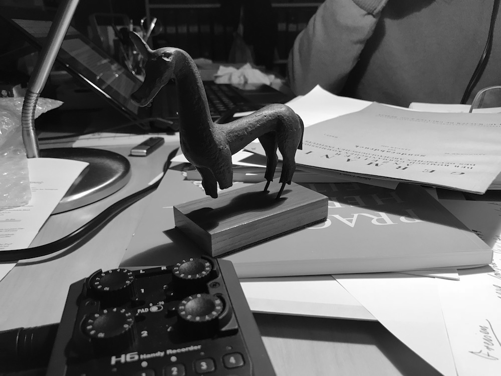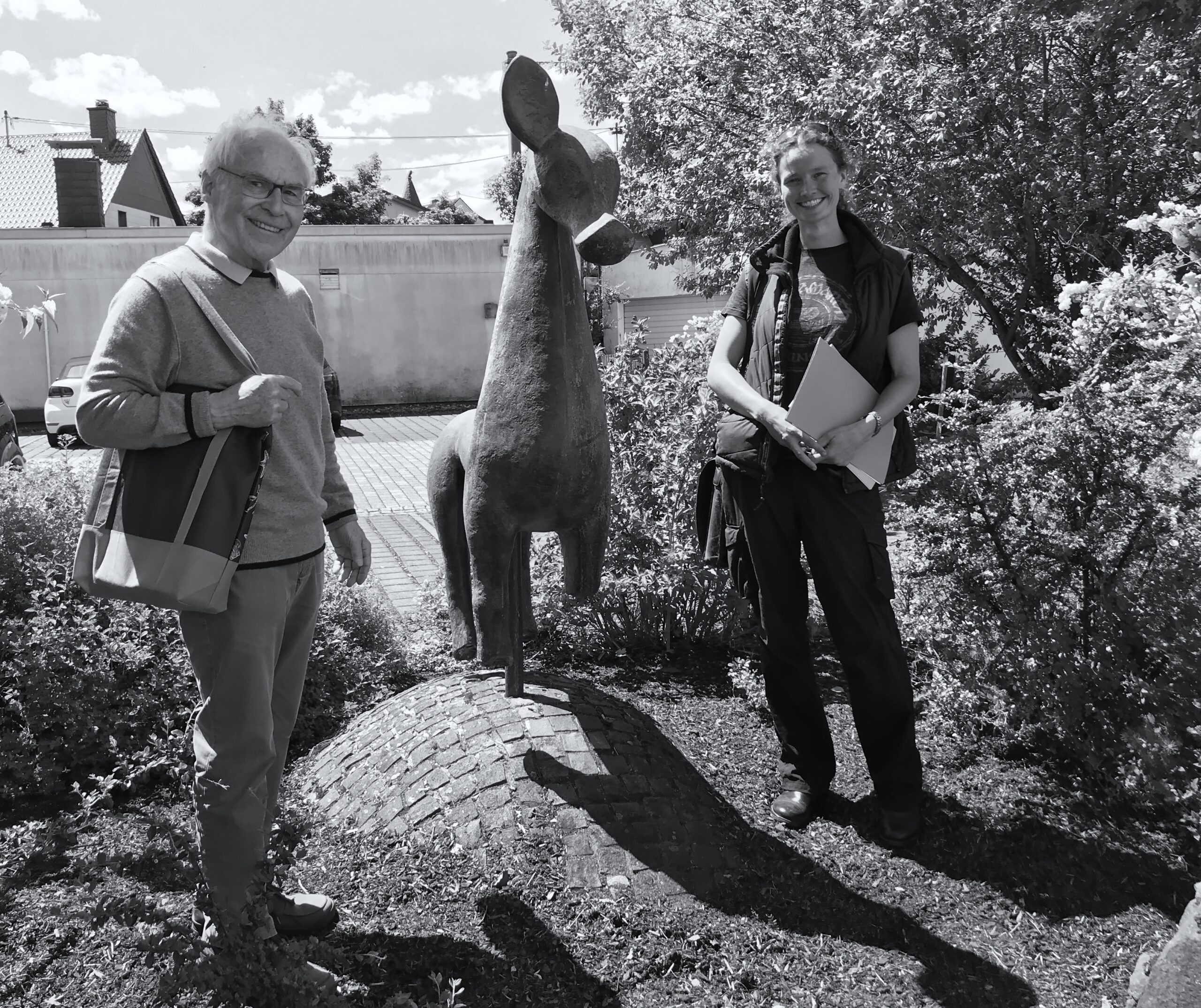 Einige offene Fragen, die vor allem die sog. Rezeptionsgeschichte dieses besonderen Fundes angehen, konnten aber nur vor Ort geklärt werden. Deshalb haben wir uns nach Freisen und Berschweiler aufgemacht, um zu erfahren welche Rolle das Pferdchen heute dort spielt, wie sich der Fundplatz darstellt oder was aus der steinernen Grabstele geworden ist, die im Pfarrhaus verbaut sein soll. Auch die Wohn- und Wirkungsstätte des Ausgräbers Johann Carl Sohns haben wir in Berschweiler, nahe bei Freisen, gesucht. Einen Abstecher zum Weiselberg haben wir auch noch gemacht. Unterstützt hat uns bei alldem die Archäologin Isabel Schormann vom saarländischen Landesdenkmalamt. Wir haben Frau Schormann im Podcast fälschlicherweise „Krollmann“ genannt – nur wegen eines Versprechers von mir gleich am Anfang – Entschuldigung für die Verwirrung!