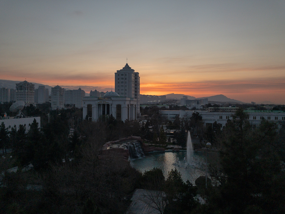Ich muss zugeben, dass mich das Land Turkmenistan sehr beeindruckt hat. Das Licht, das Klima und die Landschaft unterscheiden sich komplett von dem, was ich bisher gesehen hatte. Nie war ich so weit weg vom Meer und die Bezeichnung Zentralasien für diese Region ist gleichsam eine Beschreibung dafür, dass wir uns mitten auf der Eurasischen Platte, der größten Kontinentalplatte der Erde, befunden haben. Nie war ich aber auch in einem Land wie in Turkmenistan, dessen totalitäre Regierung sich so sehr im Stadtbild manifestiert. Der erste Eindruck, den ich bei der Ankunft in Aşgabat bekam, bestätigte sich im Laufe dieser Reise immer wieder: eine weiße, hochmoderne Architektur, sauber und aufgeräumt – aber die Stadt ist menschenleer. Ein schweres Erdbeben, das die Asgabat 1948 fast vollständig zerstörte, und ein staatlich verordneter Bauboom nach der Unabhängigkeit Turkmenistans von der Sowjetunion 1991 sind der Grund für das heutige Stadtbild. Besonders ins Auge fallen die vielen Marmorbauten, Bushaltestellen sind klimatisiert, auch die Autos in der Stadt sind weiß. Das alles strahlt eine überlegene Kühle und Monumentalität aus, die keinen Zweifel an der „Großartigkeit“ der Regierung aufkommen lässt.